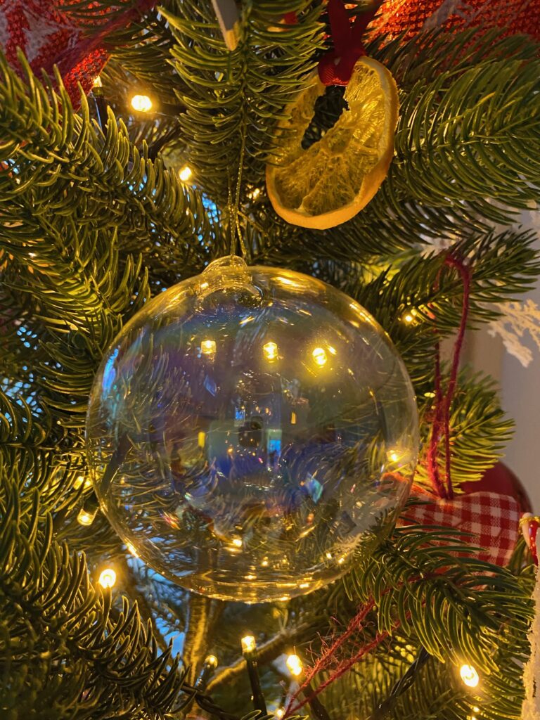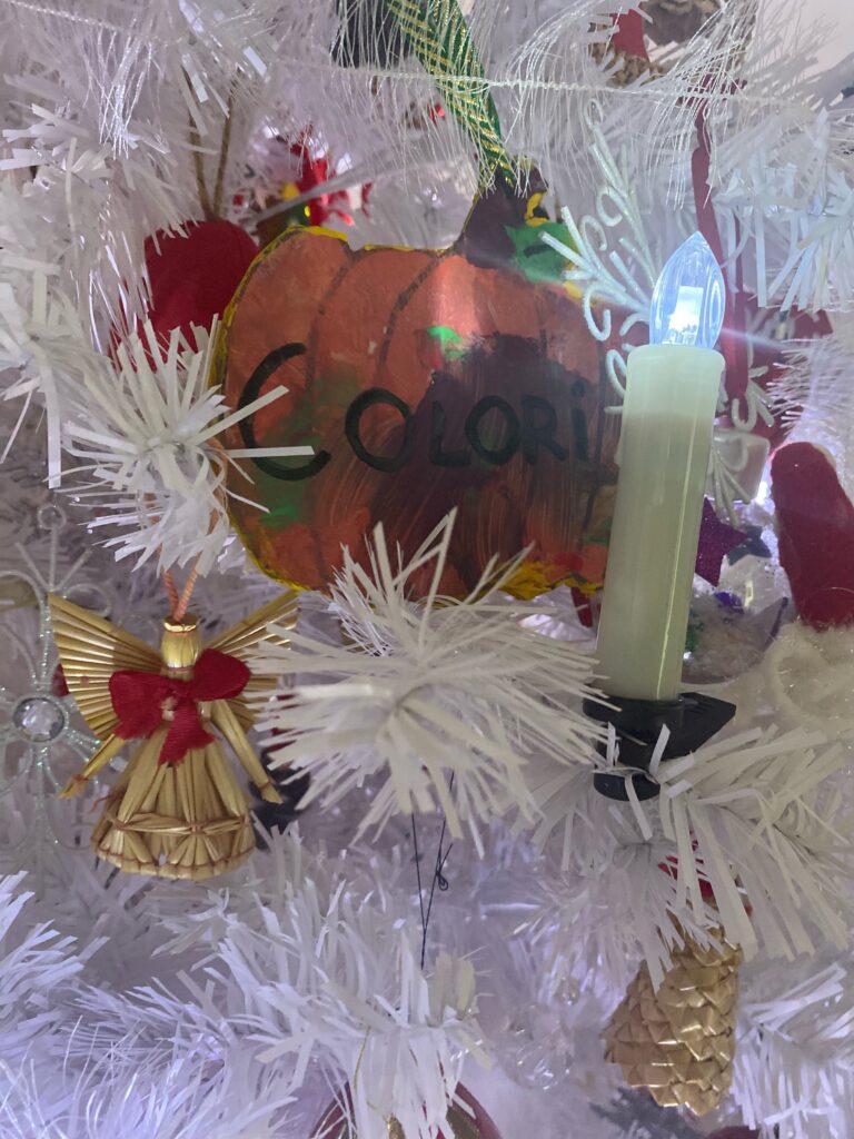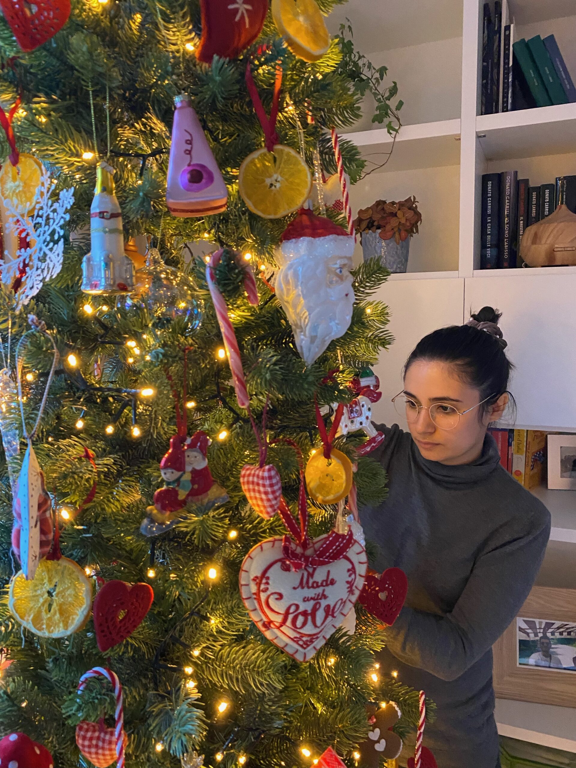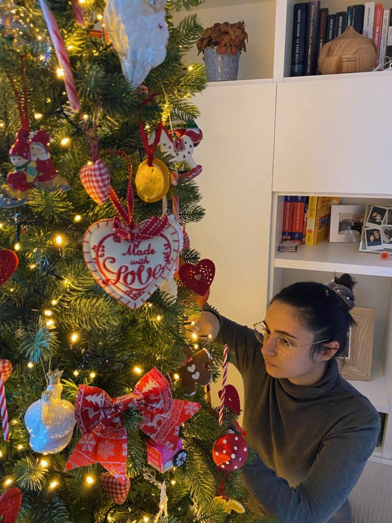 Il valore aggiunto sono le decorazioni realizzate dalla bambina della mia cliente, che rendono l’albero ancora più personale.