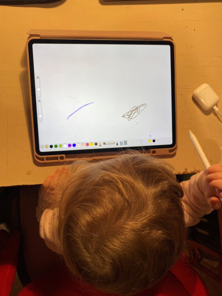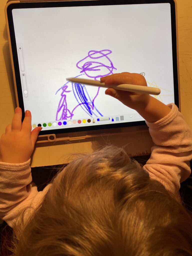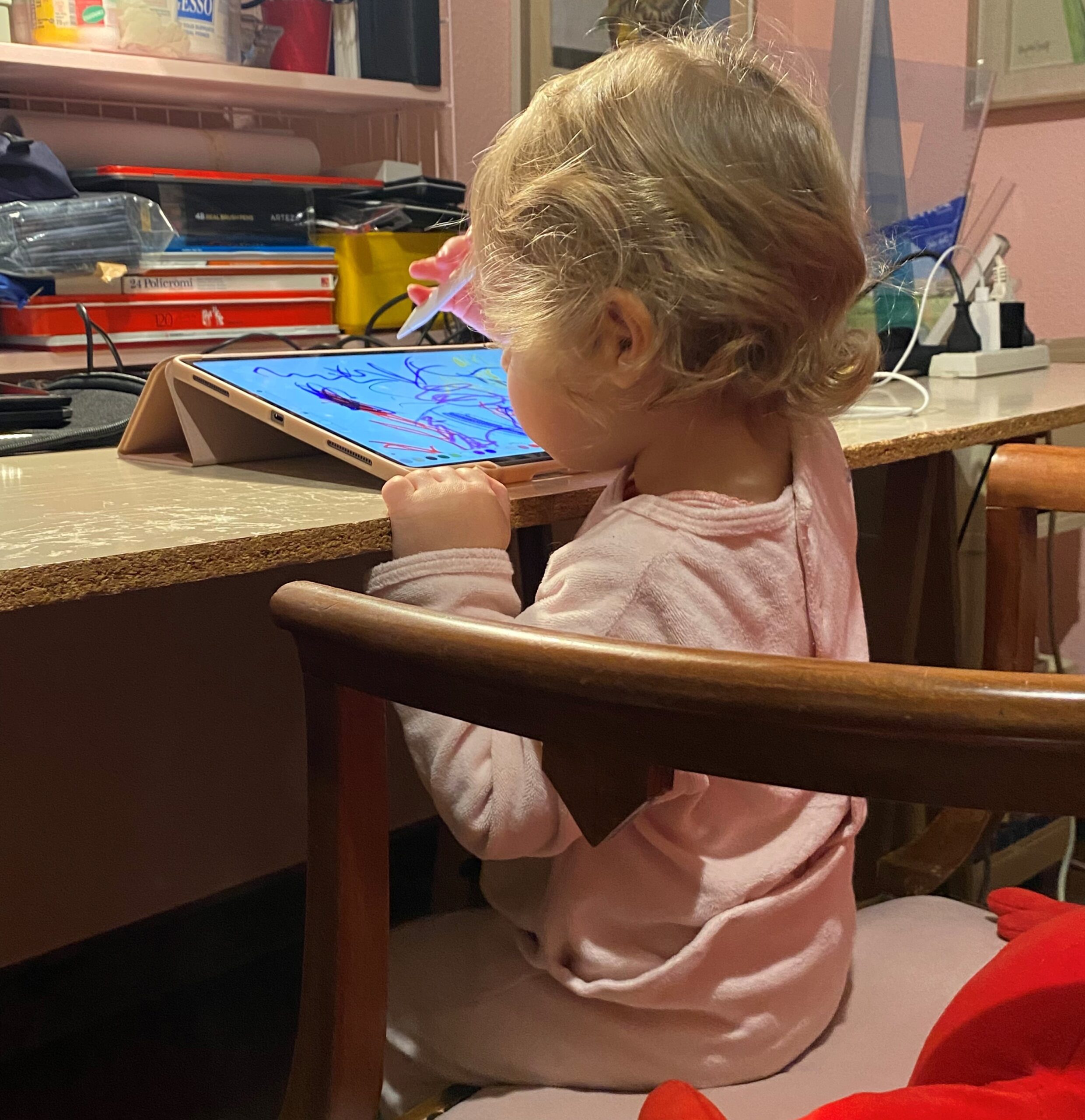 Più passa il tempo più ci avviciniamo sempre di più al mondo digitale e sempre più lavori vengono realizzati tramite queste tecnologie, per questo ho iniziato a far avvicinare la mia nipotina di due anni all’arte (sia manuale che digitale), in modo tale da farle sviluppare sempre di più le competenze artistiche.