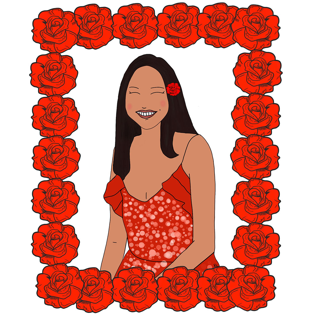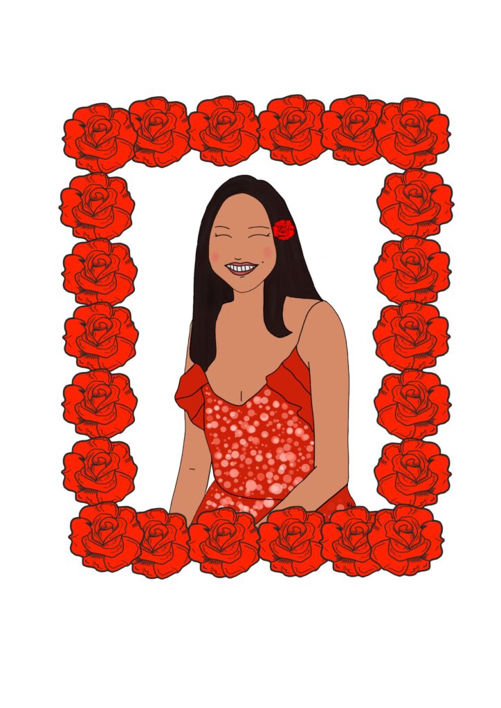 Ho deciso di utilizzare il suo colore e fiore preferito, in modo tale da dare al disegno un tocco in più.