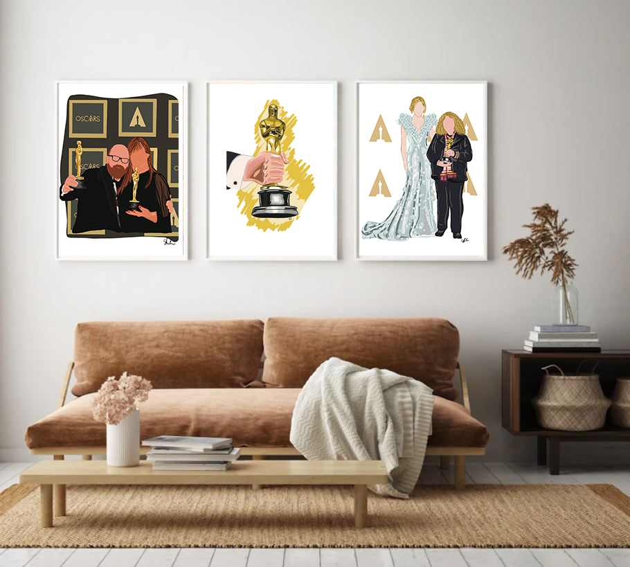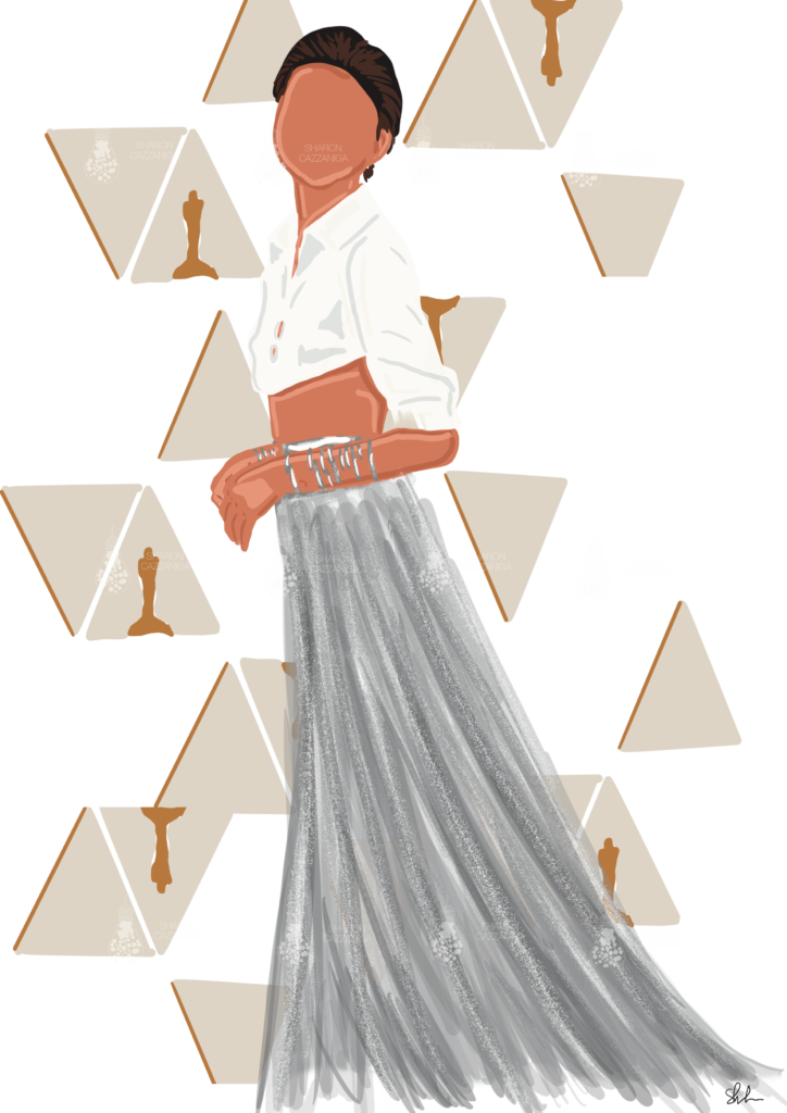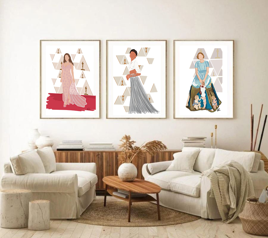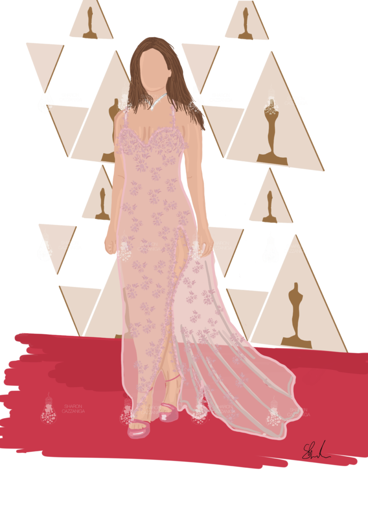 Voglio condividere con voi tre illustrazioni dei look che mi hanno particolarmente affascinato durante gli Oscars 2022.
