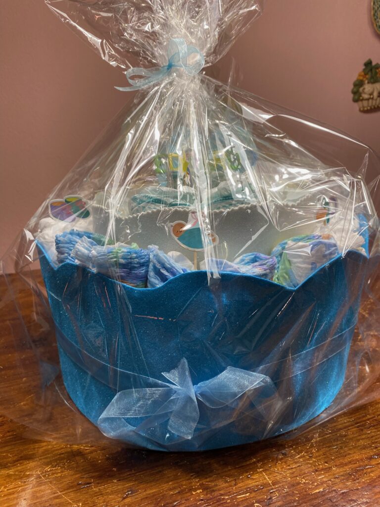 Torta di pannolini realizzata per il piccolo Edoardo, con all’interno un set pappa.