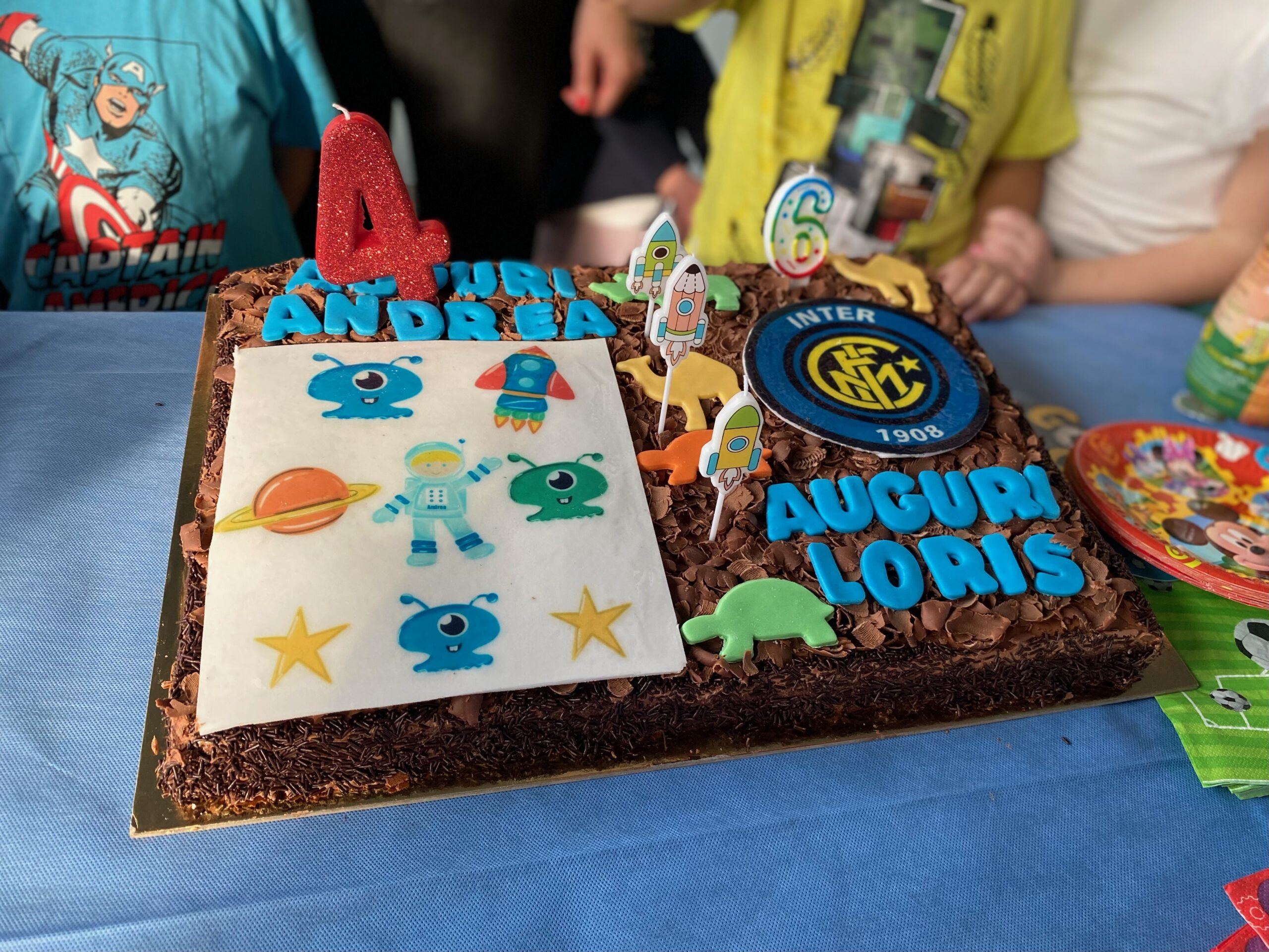 una bianca, e in fine un cuore azzurro con scritto Edoardo, decorazioni sparse e un fiocco azzurro che confeziona questa torta.